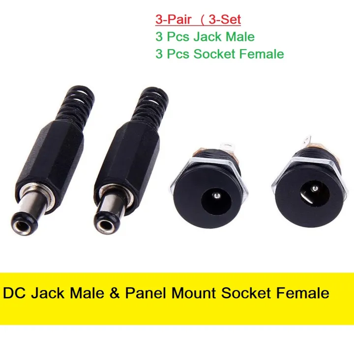 3Pair- Round Male Female Jack 5V 12V 24V DC Jack Male & Panel Mount Socket Female DC Power Jack 2.1mm Plug Socket Power Supply Cables Adapters