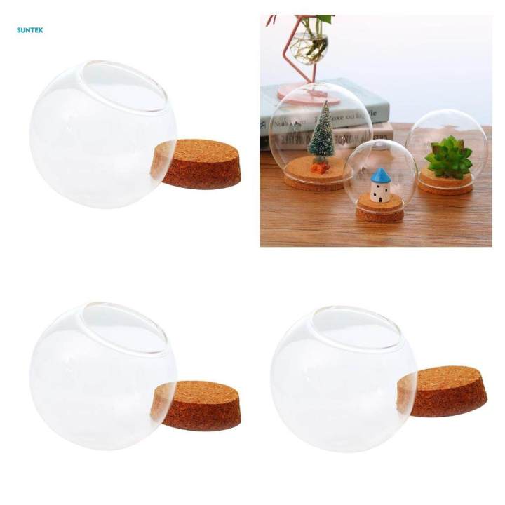 3pcs Glass Ball Shaped Cover Landscape Terrarium Container Lid Vase Bottle