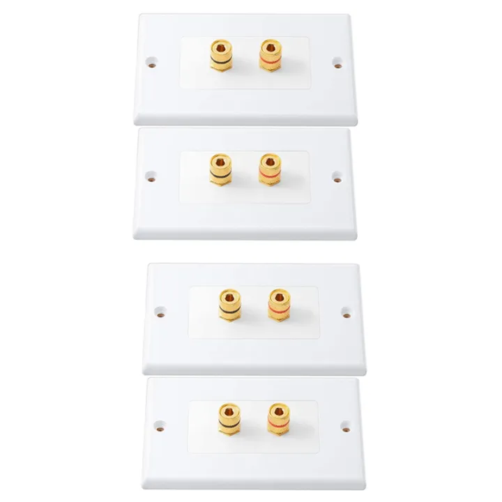 4 Pack Single Gang 1.0 Speaker Wire Wall Plate (Banana Plug Wall Plate) for 1.0 Speaker, White