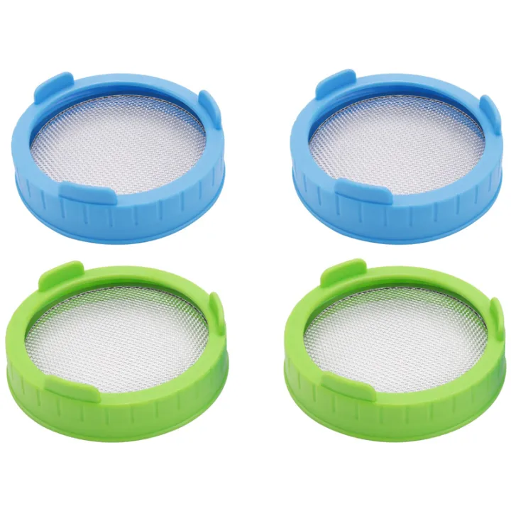 4 Pack Sprouting Lids, Plastic Sprout Lids with Stainless Steel Screen for Wide Mouth Mason Jars, Sprout Maker