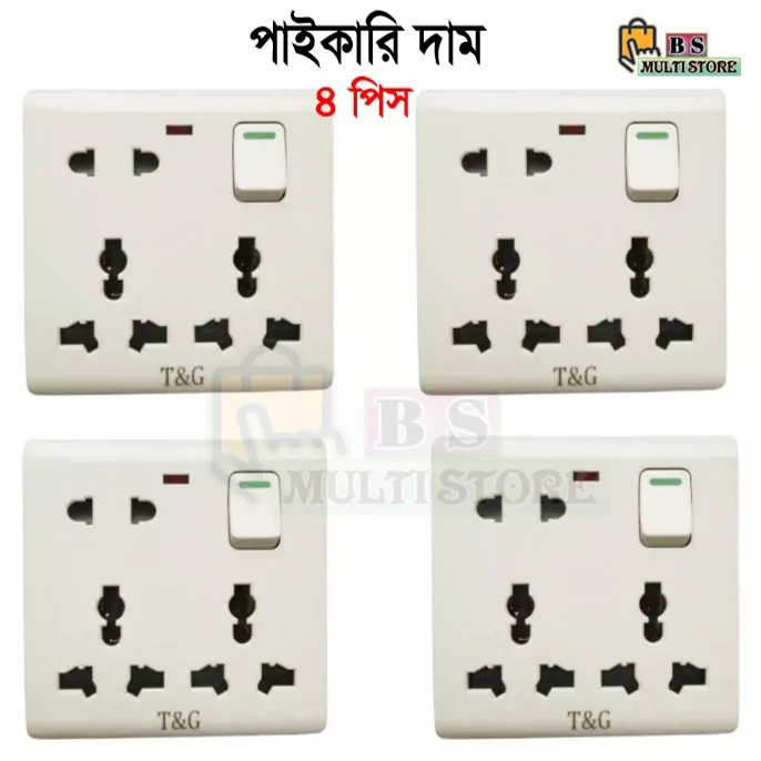 4 Pcs 8 Pin Multi Gang Socket Double 3 Pin- 1Piece 2 Pin Multi Function Universal Wall Switch Socket