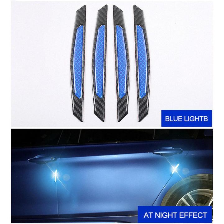 4 Pcs Super Blue Reflective Stickers Fiber Strips Car Side Door Edge Bumper Anti-Scratch Protection Guards Trim Stickers Universal