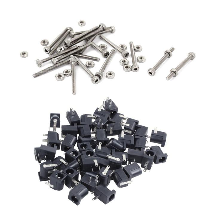 45 Pcs DC Power Jack Socket 2.1mm X 5.5mm Barrel-Type PCB Mount DC-005 with M2 X 20mm Long Hex Socket Knurled Cap Screws Bolts Nuts Set 20Pcs