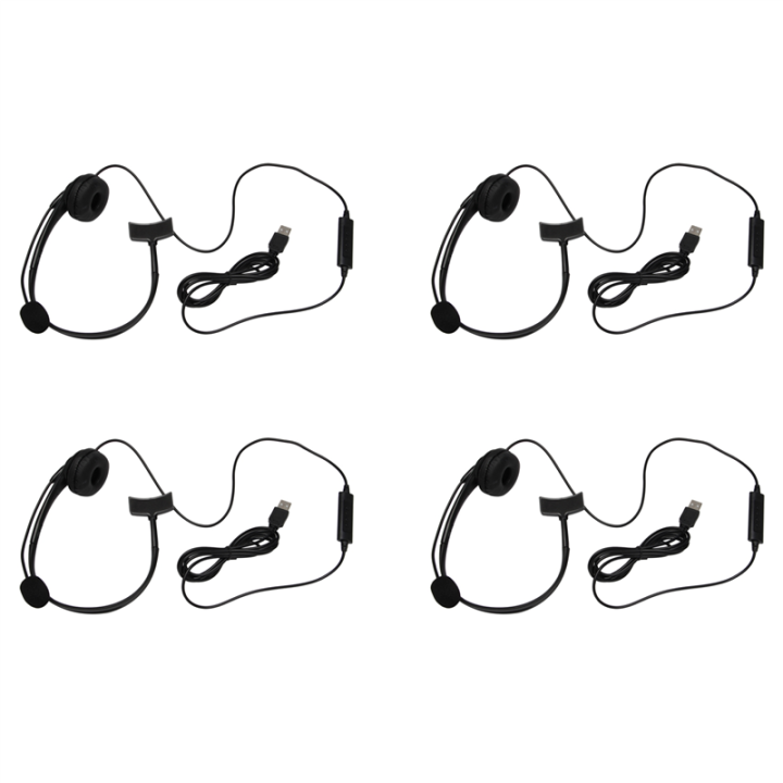 4X USB Call Center Headset with Noise Cancelling Mic Monaural Headphone for PC Home Office Phone Service Plug and Play