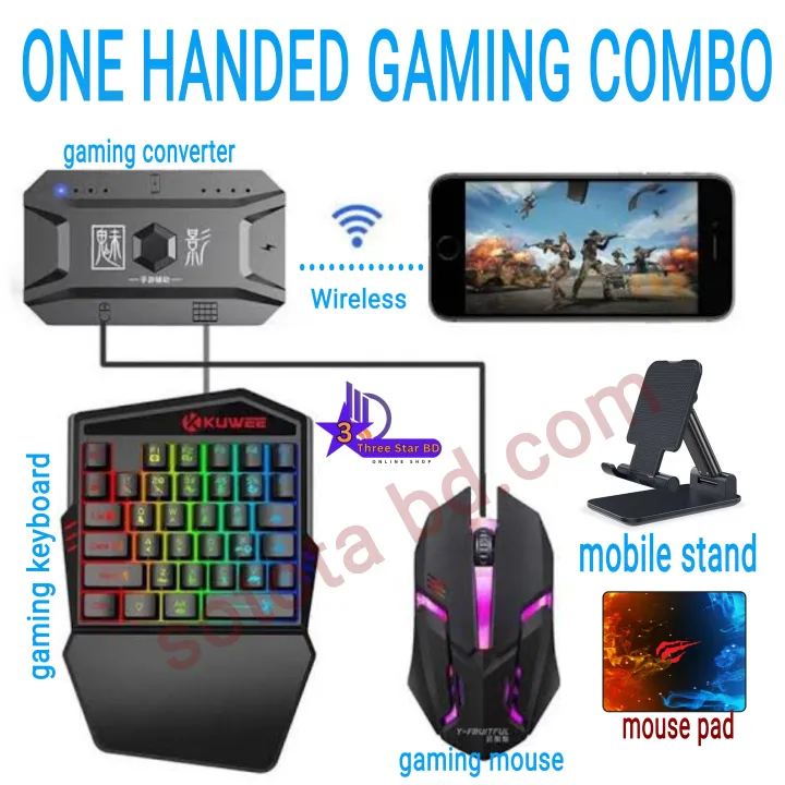 5 in 1 Bluetooth Gaming Keyboard Mouse Converter Combo for Smartphone, play your mobile games using the keyboard and the mouse Gaming Accessory Kit (Multicolor, For Android, iOS)