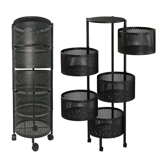 5 Layers Kitchen Rotating Shelf 360 Degree Baskets Fruit Vegetable Storage Rack Floor Round Shelf With Wheels