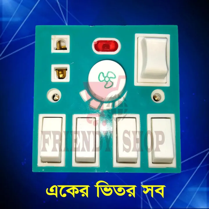 5 In 1 Ac 250V 6A Combine All In One 4 Pcs Gang Switch Fan Dimmer Regulator 2 Pin Socket Led Indicator And Fuse Combine Wall Gang - Remote Control Switch