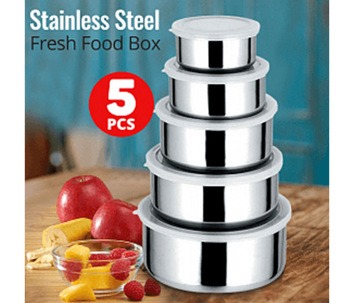 5 Pcs High Quality Stainless Steel Protect Fresh Food Container (5 in 1) Storage Box-1Set