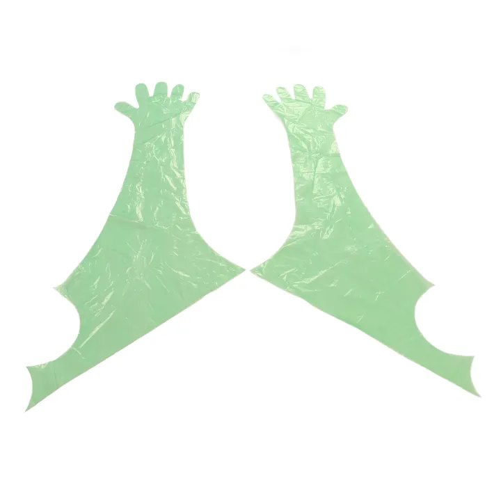 50Pcs Disposable Long Arm Glove PE Green Veterinary Examination Artificial Insemination Gloves for Animals