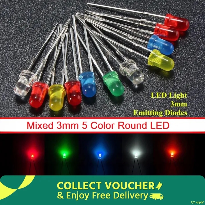 50Pcs LED Mixed 3mm 5 Color Red Green Blue Yellow White Round LED Light Emitting Diode Basic Light Bulbs
