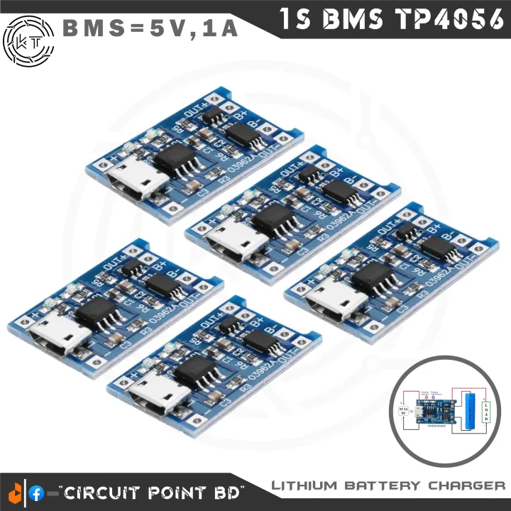 5Pcs TP4056 BMS Li-Ion/Lithium Battery Charger Micro USB 5V 1A 18650 With Protection.