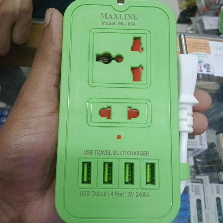 মাল্টি প্লাগ 6 ফুট কেবল সহ ম্যাক্সলাইন 4 ইউএসবি ট্র্যাভেল মাল্টি ফাস্ট চার্জার - multi plug