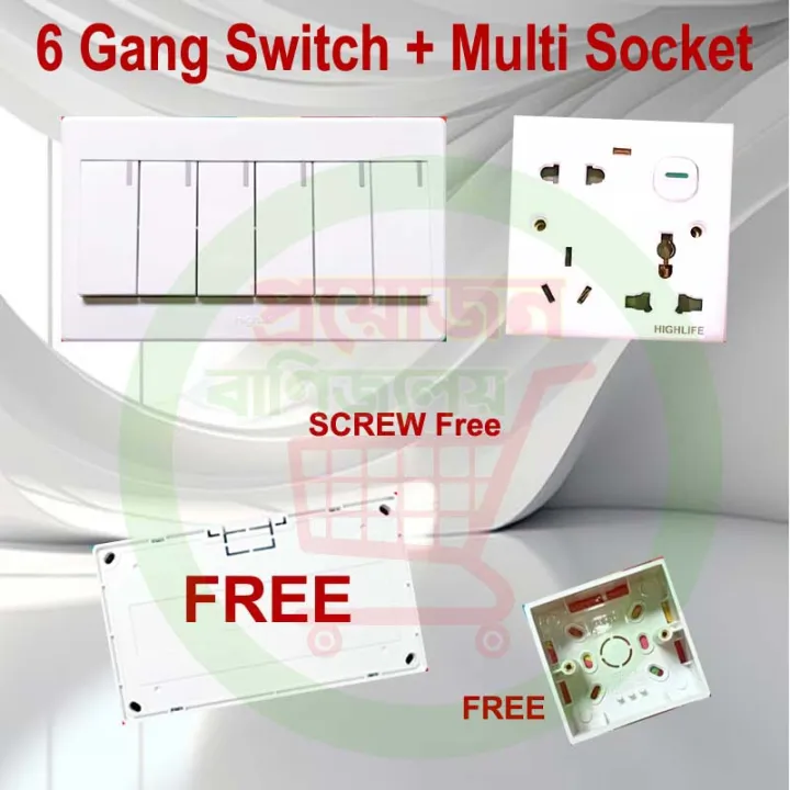 6 Gang Switch 6 Pin Multi Socket Combo HighLife