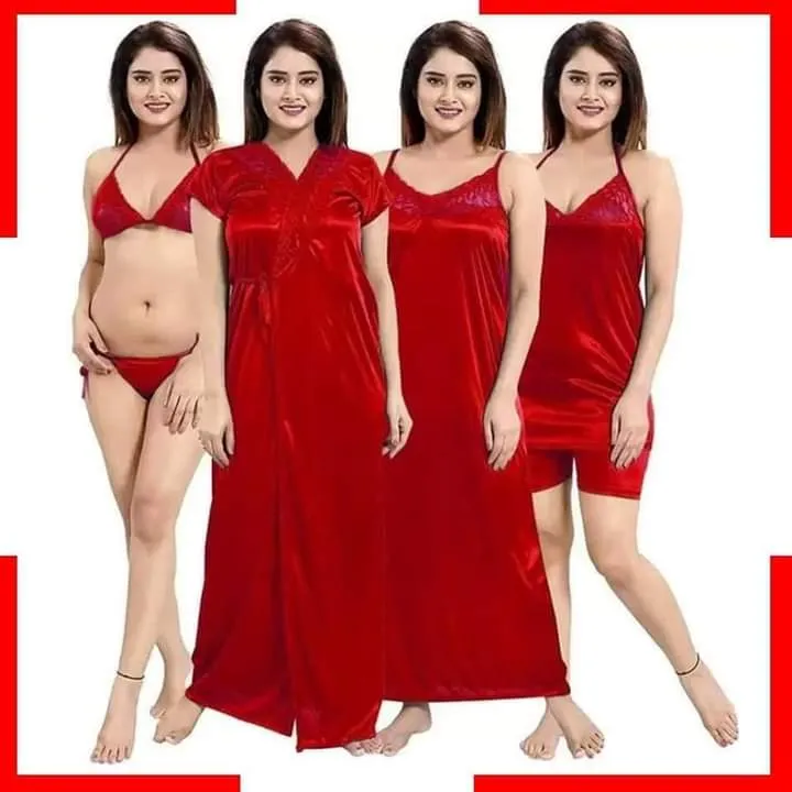 6 part Night Dress Silk Color Nighty Comfort Sleeping Dress pink purple blue misty Red Color Indian Silk Super Soft and elegan night hot romantic dress for women bikini penty gaown semis pants tops nighty silk dress for girl