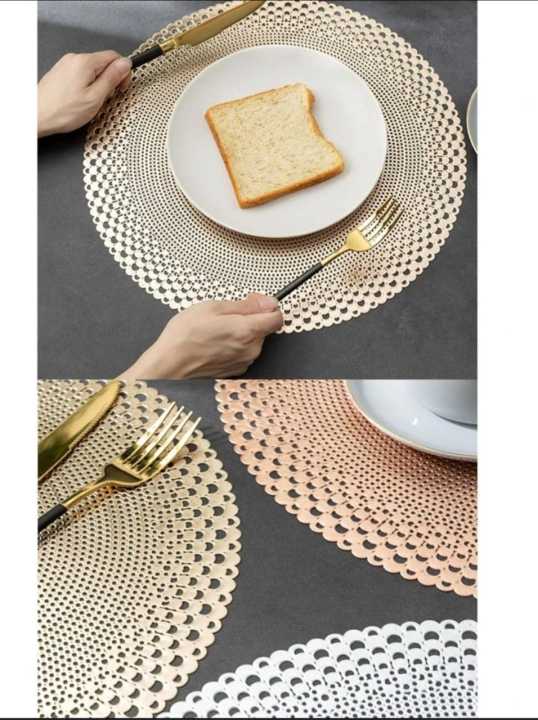 6 pec Golden and Silver Dining Table Placemat, Washable Table Mats
