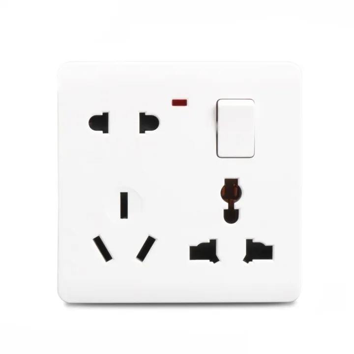 6 Pin Multi Gang Socket with Indicator 3 pin & 2 Pin Multi Function Universal Wall Switch Socket