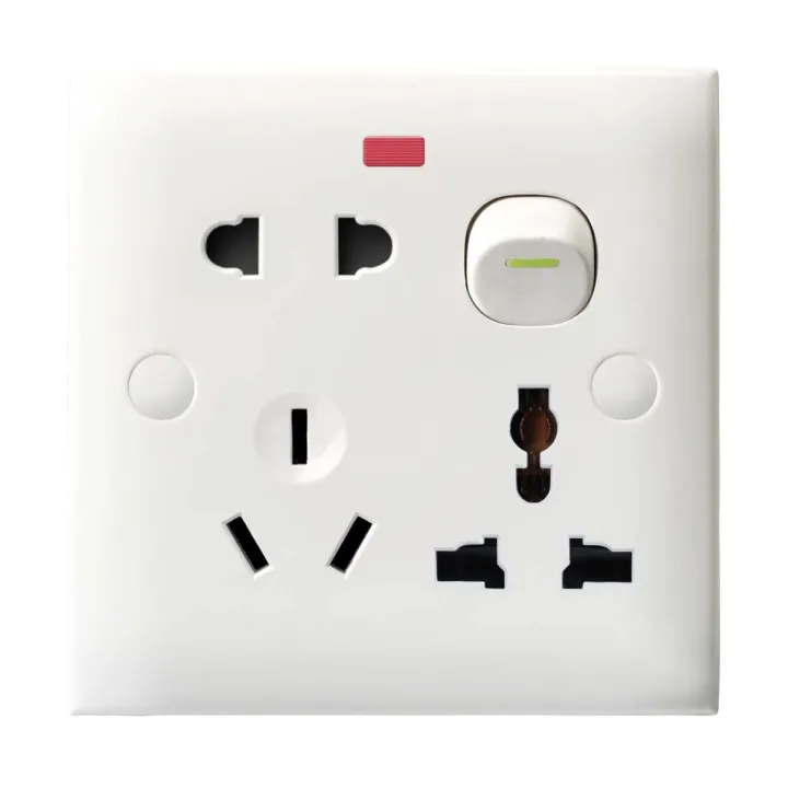 6 pin wall multi socket with Indicator 3 pin & 2 Pin With Switch