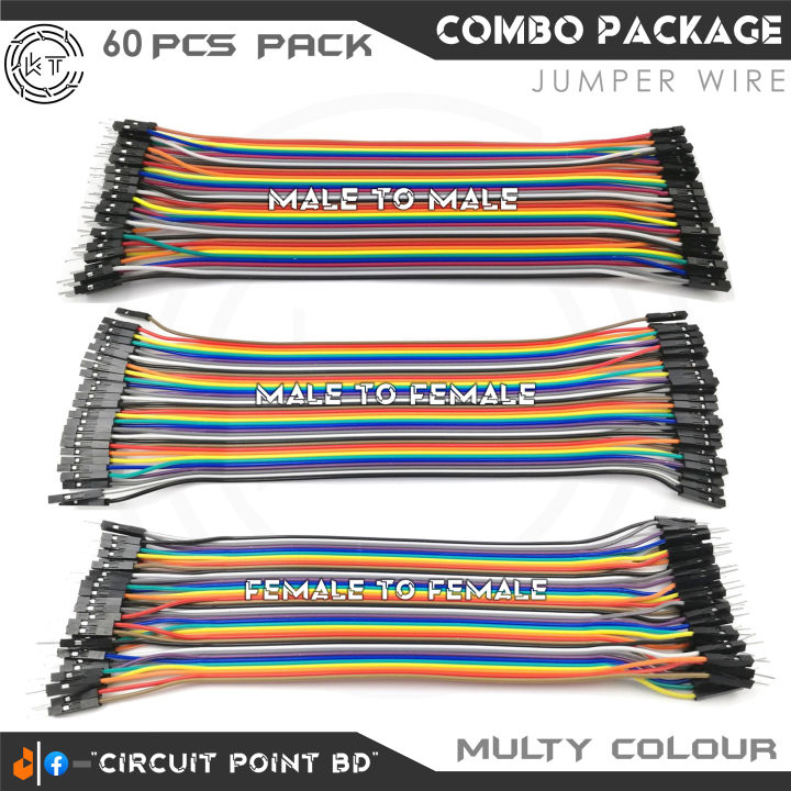 60Pcs Combo "Male to Male + Male to Female + Female to Female" Jumper Wire Cable Multycolour - connection wire for breadboard or Solderless Connection Arduino, All Sensor and Electronics.