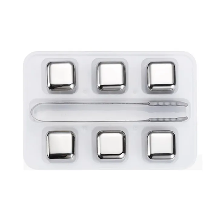 6Pcs Stainless Steel Ice-Cubes Set Reusable Chilling Stones Wine Cooling Chilling Rock Bar Tool for Whiskey Wine