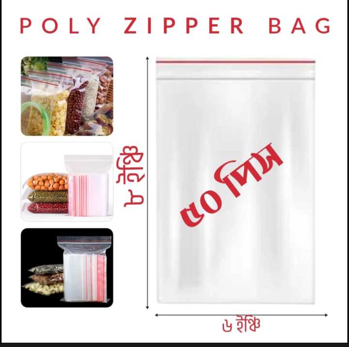 6"X8" Inch Pack of 100 Pcs Clear Zipper Poly Bag / Zip Lock Bag.