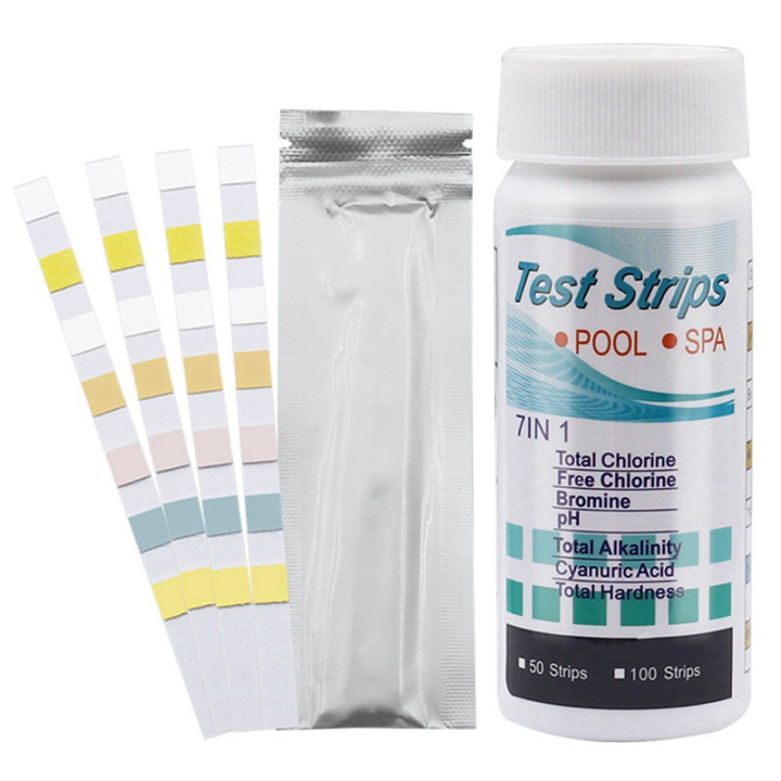 7-In-1 Swimming Pool Test Paper Ph Test Paper Water Quality Test Paper Residual Chlorine Test Paper 1 Bottle Of 50