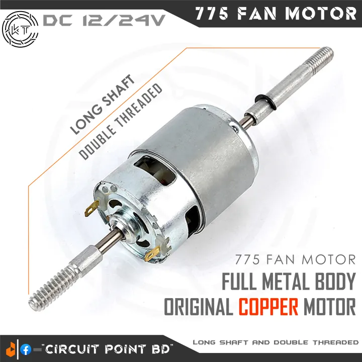 775 12V DC Fan Motor with Long Shaft and Double Threaded Coupler, High Speed, Heavy Duty, Full Metal Body, Original Copper Core Motor.