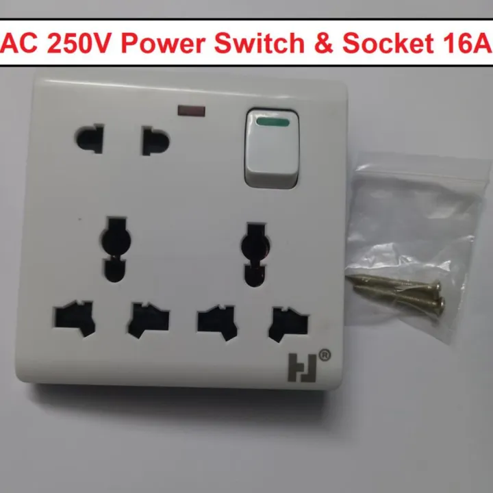 8Pin Universal Power Switchs 3Pin 2Pin Combine Socket AC 250V 16A 8 Pin Combine Wall Switch Box Socket Electrical Wall Mount Gang Plug Socket For IPS UPS Stabilizer Computer Refrigerator