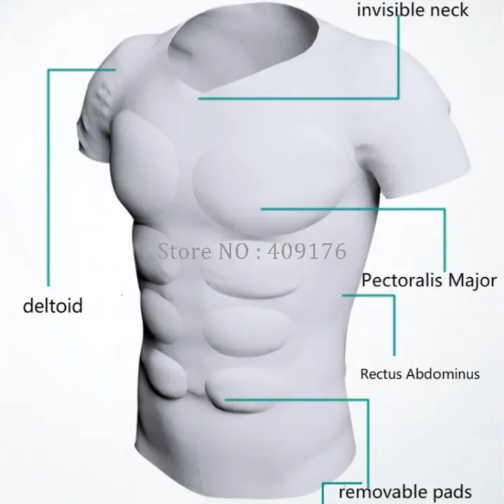 ABS 8 Pack Muscle Body Shirts Men Removable Pads Shaper Abdominal Underwear Corset Power Tops Invisible Undershirts Prayger