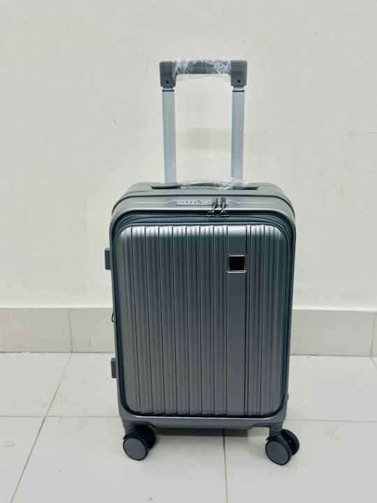 Modern Gunmetal Grey Hard-Shell Carry-On Luggage - Durable Ribbed ABS Spinner Suitcase with Telescopic Handle