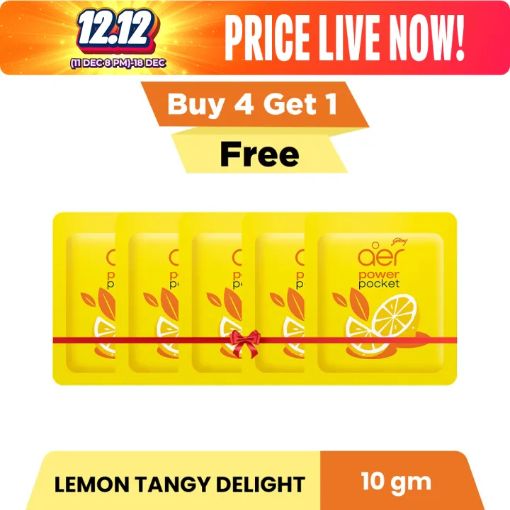 Aer Power Pocket Bathroom Freshener Lemon Tangy Delight 10 gm (Buy 4, Get 1 Free)