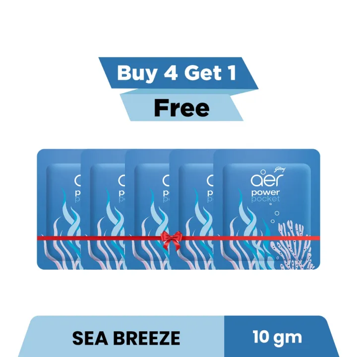 Aer Power Pocket Bathroom Freshener Sea Breeze 10 gm (Buy 4, Get 1 Free)