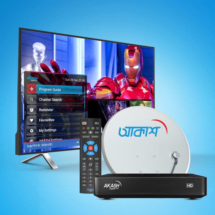 AKASH HD Connection with 12 Months Package + 3 Months Free Subscription (Total 15 Months Subscription) with Free Installation & Delivery