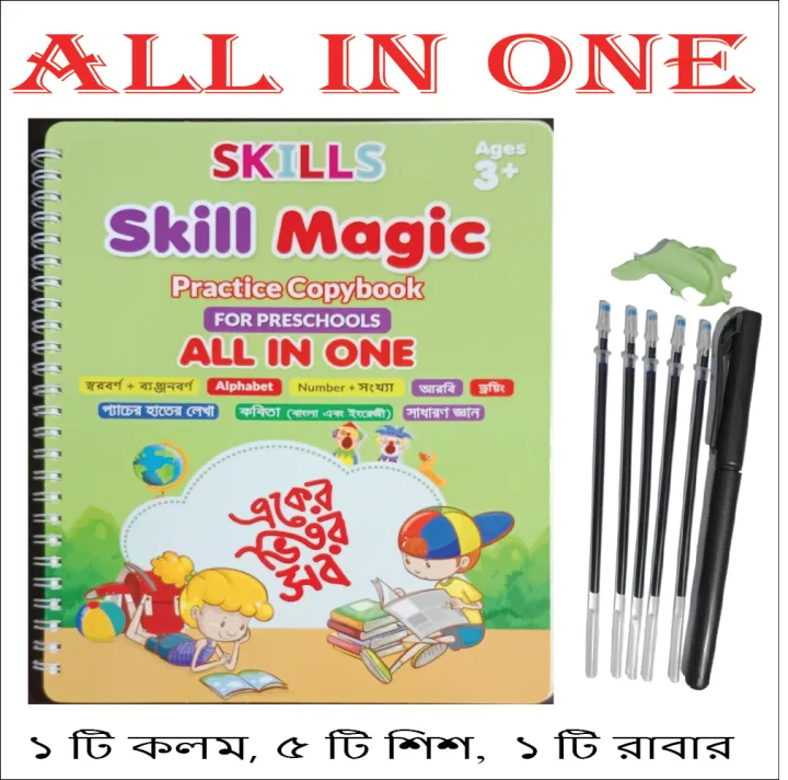 All In One Kids Magic Handwriting Practice Book for Age 3+ - All in one(Bangla, English, Math, Arabi, Drawing, English Caligraphy & GK)
