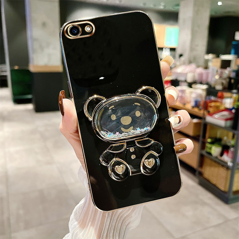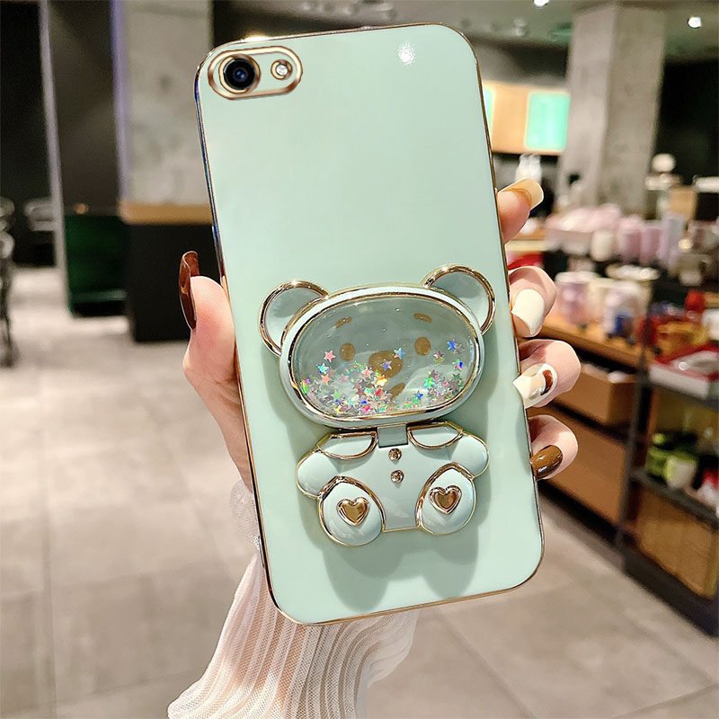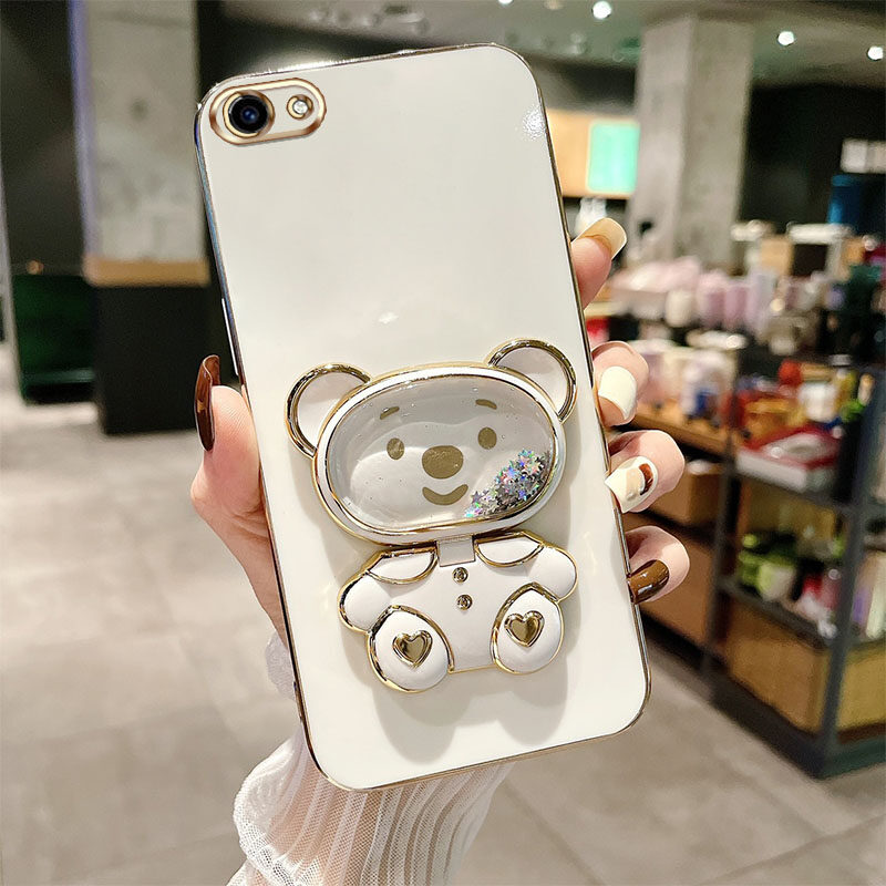 AnDyH Phone Case for Vivo Y81 Y83 Y81i Y71 Y71i Y79 V7 Plus Y75 V5 Lite Vivo 1724 1801 1812 1808 1803 1609 Cute Quicksand Liquid Bear Bracket Anti Drop Camera Protection