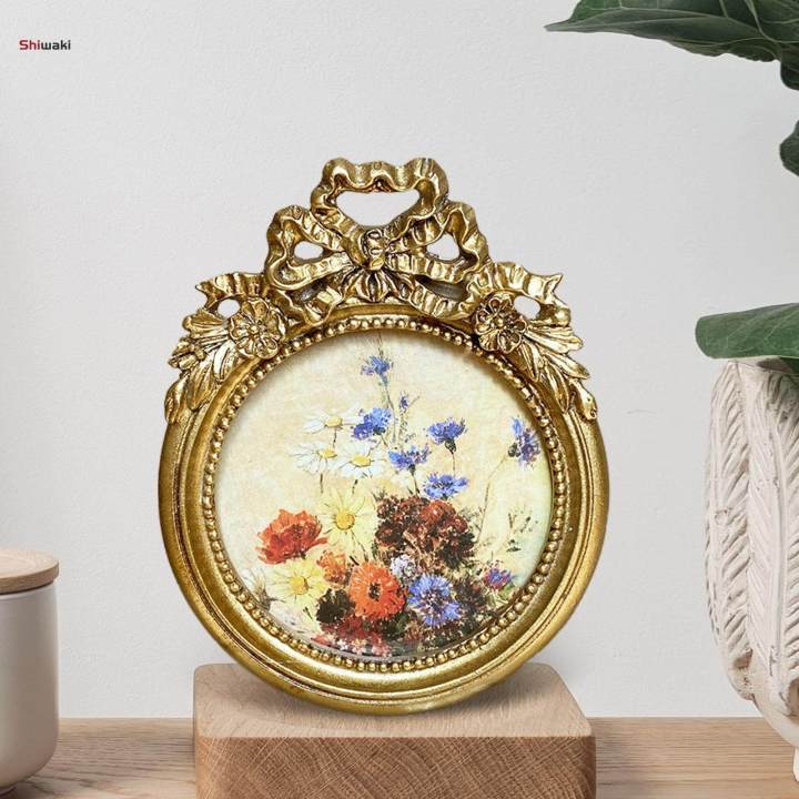 Antique Photo Frame Round Tabletop and Wall Hanging for Home Decoration