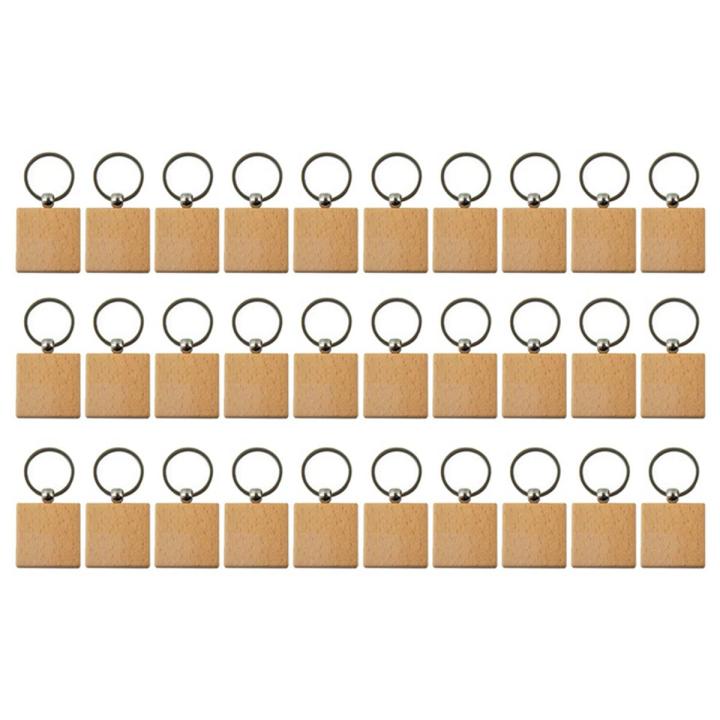 ARELENE 30Pcs Blank Square -Shaped Wooden Keychain DIY Wood Keychains Key Tags DIY Gifts