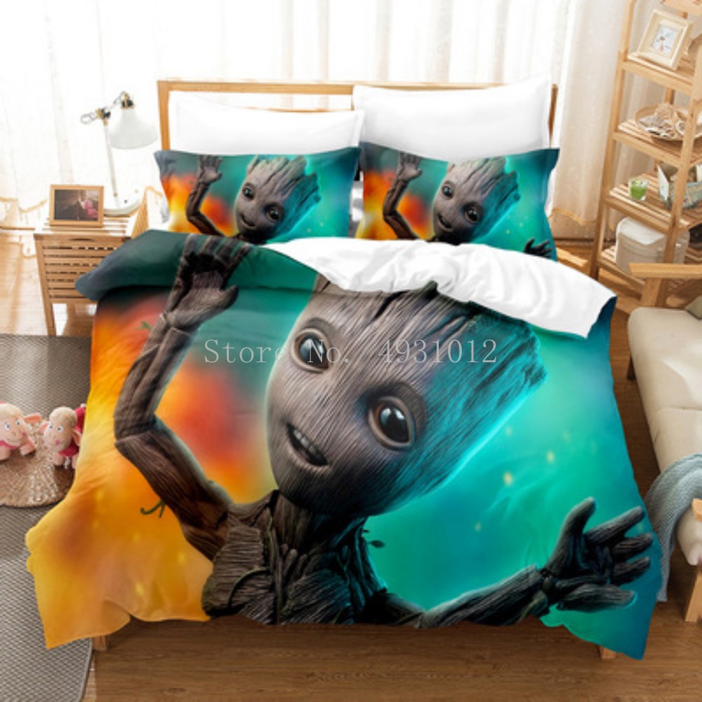 Avengers Hero Series Groot Bedding Set Digital Print 3Pcs Duvet Cover Pillowcase Home Textile Single Double King Bed Size