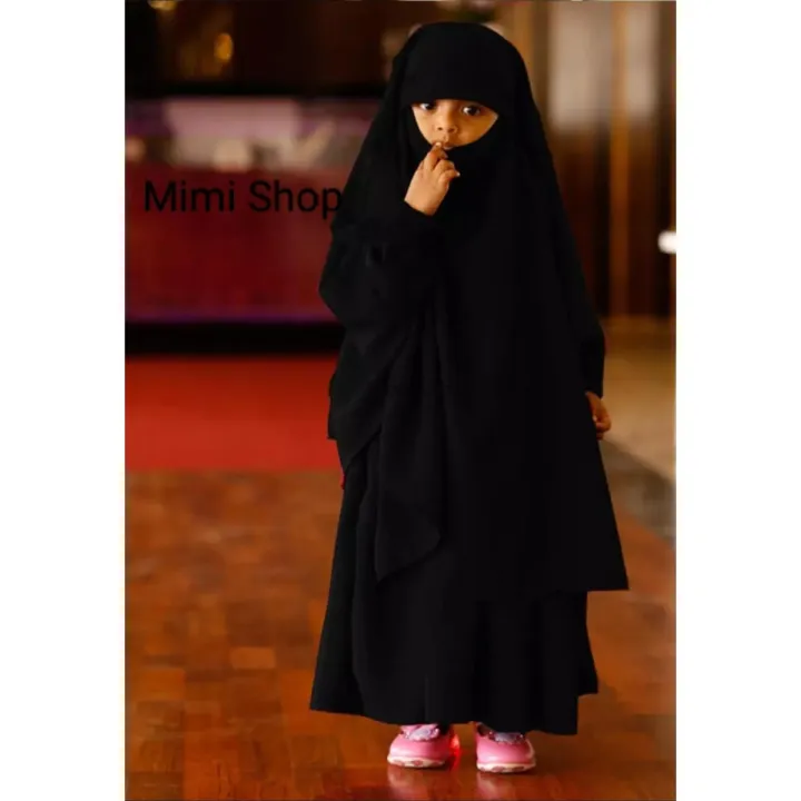 Baby Borka Khimar Adjusted Niqab Hijab Full Set 4-10 Years Girls Dubai Cherry - Hijab Collection