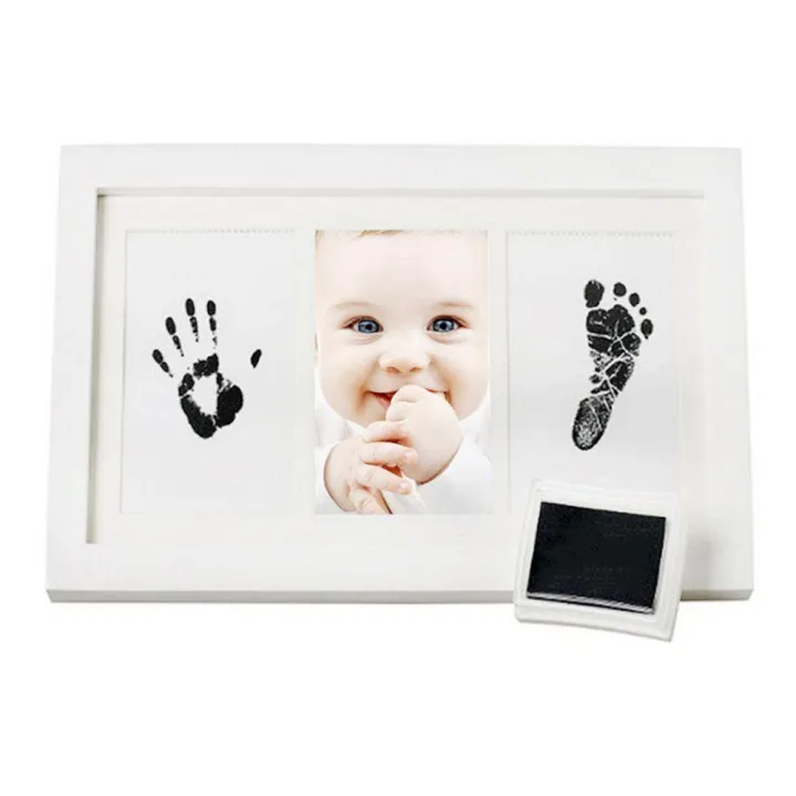 Baby Handprint Kit By Little Hippo - Newborn Baby Picture Frame (WHITE) Non Toxic INK! Baby Footprint Kit Best Baby Shower Gifts! Perfect For Baby Boy Gifts And Baby Girls Gifts