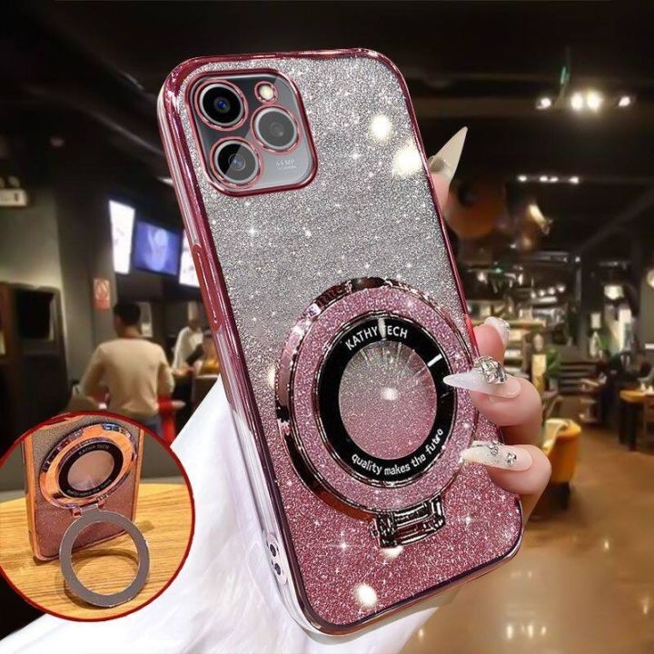 Back Cover iPhone 15 14 Pro Max 15 14 Plus 13 Pro 12 Pro Max 11 Pro Max Xr Xs Max 7 8 6s Plus SE Back Cover with Stand Holder Luxury Shiny Gradient Plating Glitter Girls Slim Phone Case Clear Soft Silicone Protective Cases Pouch Women