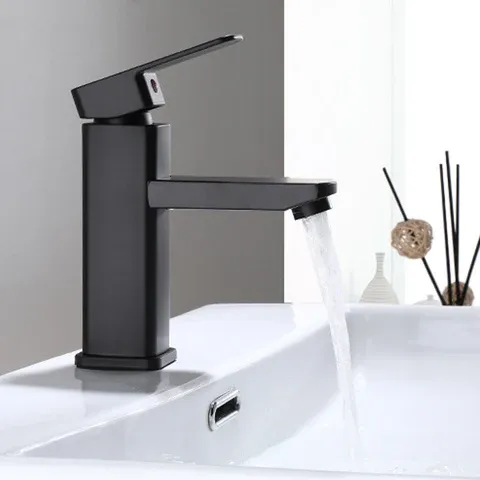 Basin mixer black china imported basin mixer hot and cold water double line Modern Black Square Faucets Hot and Cold Water Mixers Kitchen Bathroom Taps