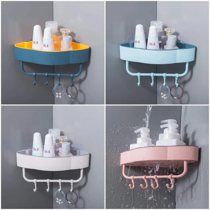 হ্যাঙ্গার সহ বাথরুমের তাক কর্নার-বিভিন্ন রঙের - bathroom corner shelf