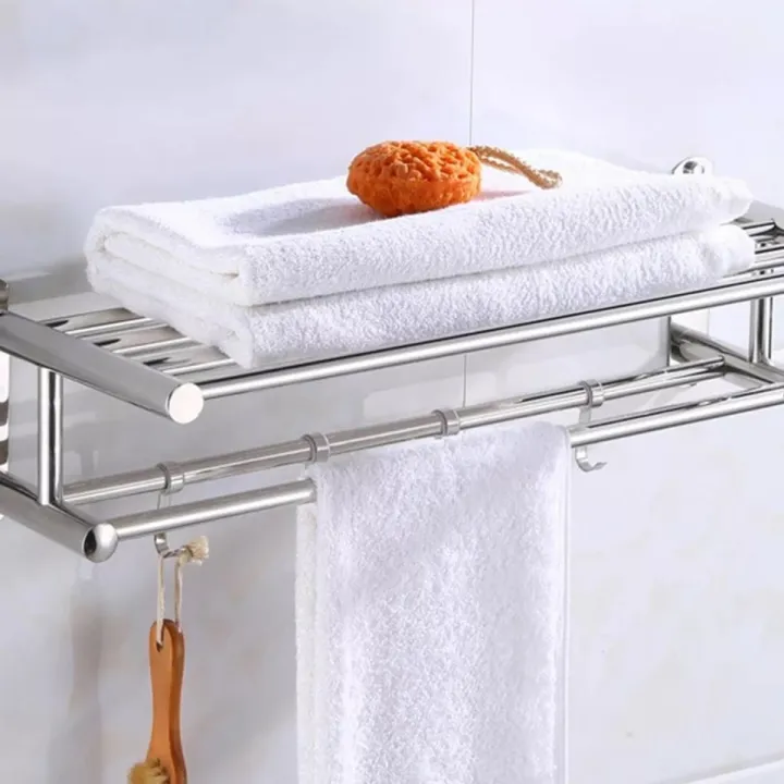 Bathroom Towel Holder Bathroom Organizer Stainless Steel Wall-mounted Towel Rack Home Hotel Wall Shelf Hardware Accessory