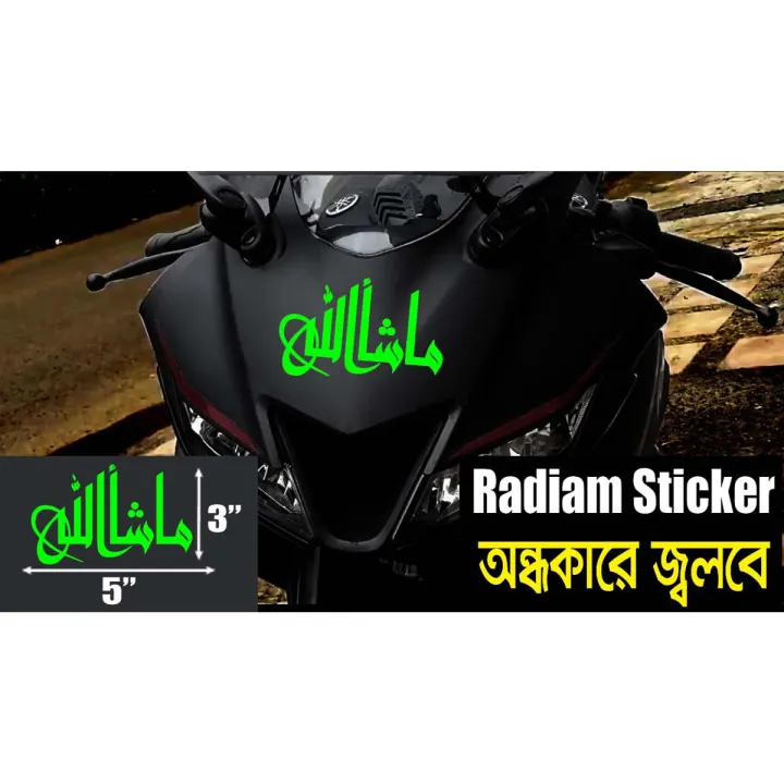 বাইকের রেডিয়াম স্টিকার- মাশআল্লাহ /অন্ধকারে গ্লো (জলরোধী এবং প্রিমিয়াম মানের)/বাইক স্টিকার গ্যালারী - bike stickers