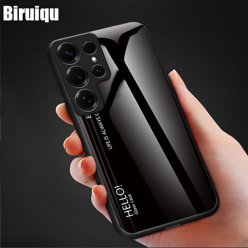 Biruiqu For Samsung Galaxy S25 S25+ S25 Ultra Shockproof Gradient Tempered Glass Back Soft Silicone Edge Case Cover