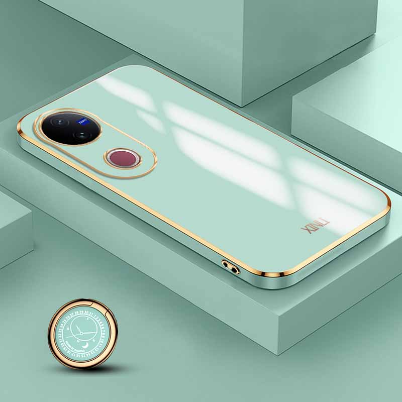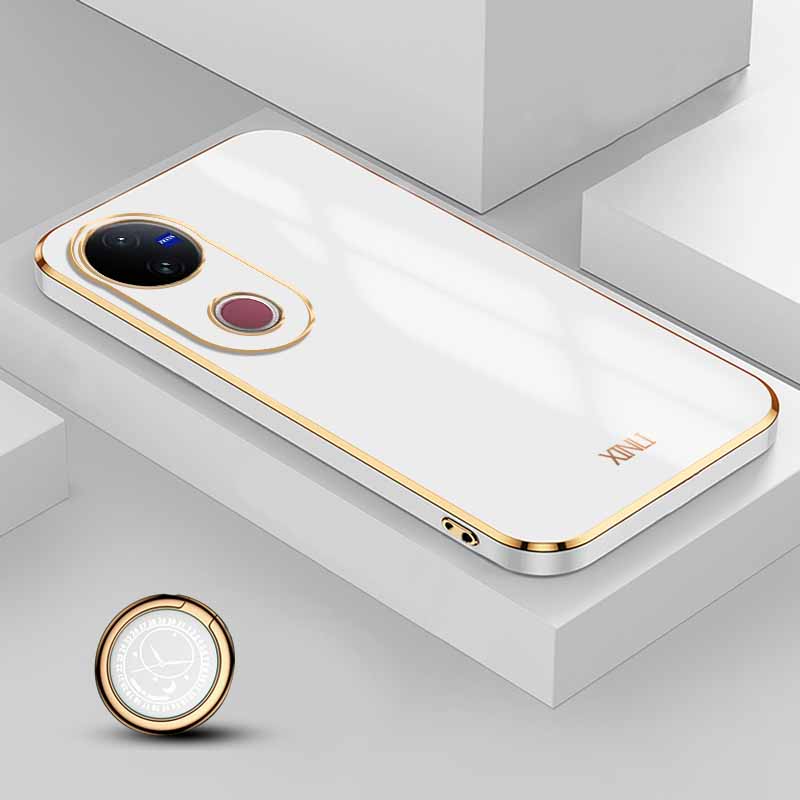 Biruiqu for VIVO V50 VIVO T4R Back Cover Luxury 6D Plating Frame Shiny Bling Phone Pounch Soft Silicone Square Phone Case