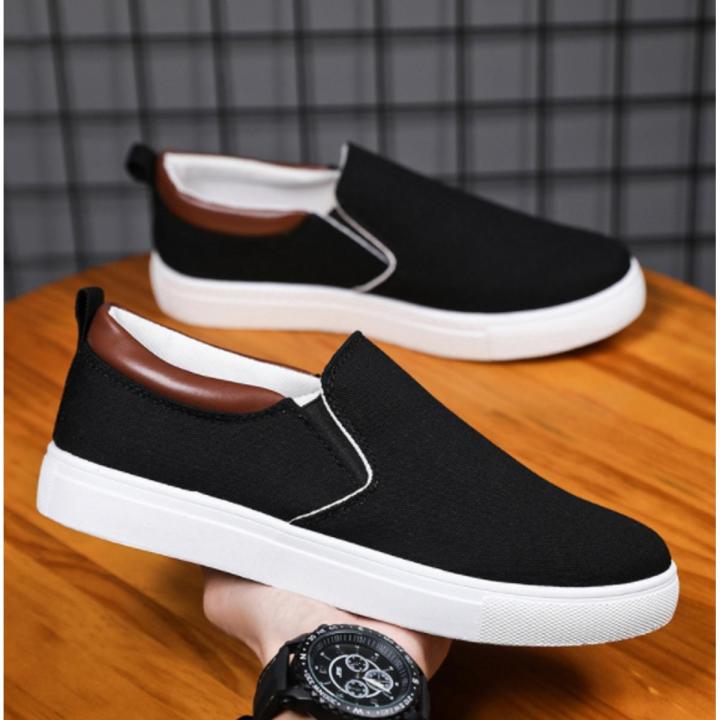 Black Blue White And Khaki Color Korean Canvas Sneakers Shoes For Men Slip On Casual Shoes - Step Out In Style With These Korean Canvas Sneakers