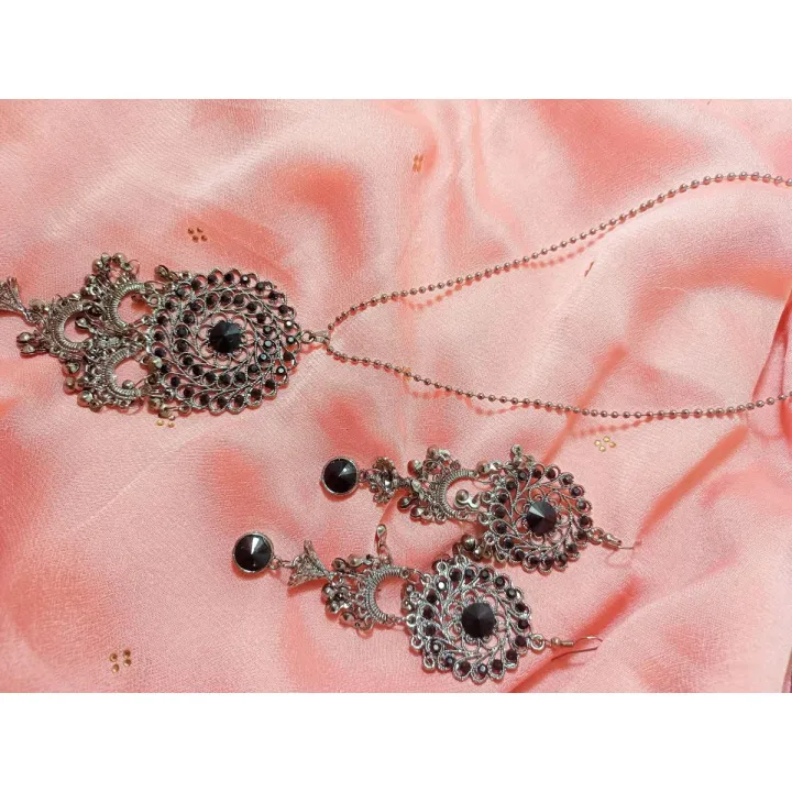 BLACK METAL PENDANT NECKLACE WITH EARRINGS|
