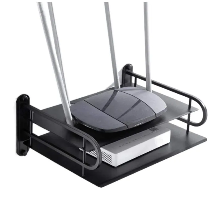 Black Metal Wireless Wifi Router Storage Box / TV Set Box Shelf Wall Hanging Plug Board Bracket Cable Storage Organizer