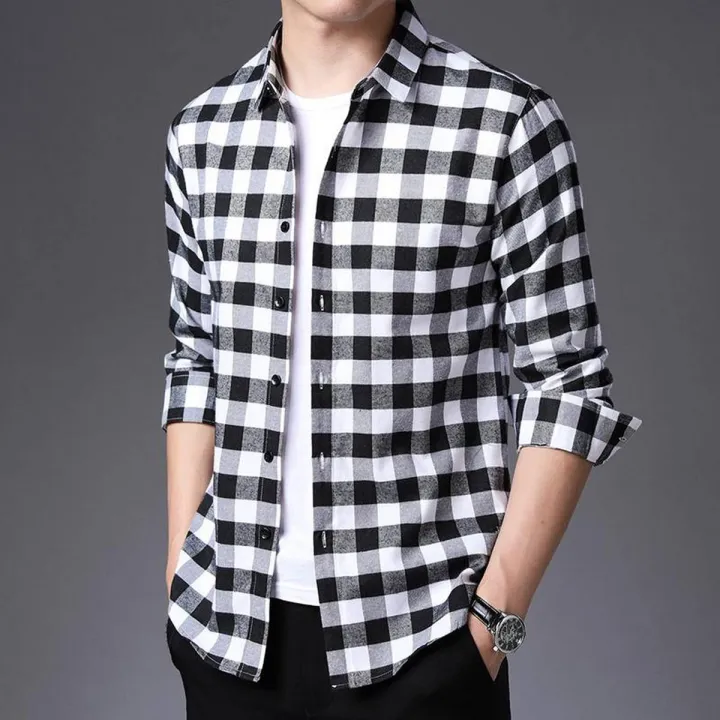 Black & White Check Shirt For Men - Denim Shirt For Men